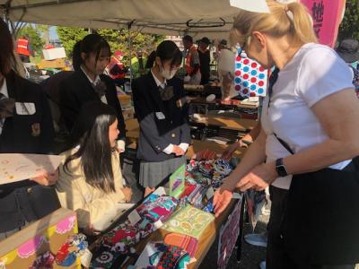 昨年に引き続き、うしくWaiワイまつりに本校生徒が参加しました。毎年11月3日の文化の日に開催されるこの産業祭には、多くの来場者が訪れます。今年は能登の復興支援をテーマに、能登高校のクッキーや能登の物産の販売に加え、ケニア・コイノニア教育センターのオリジナル商品販売、小児がん支援のレモネードスタンドを、つくば開成高校の生徒さんと一緒に行いました。