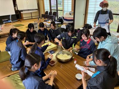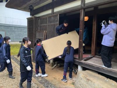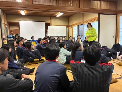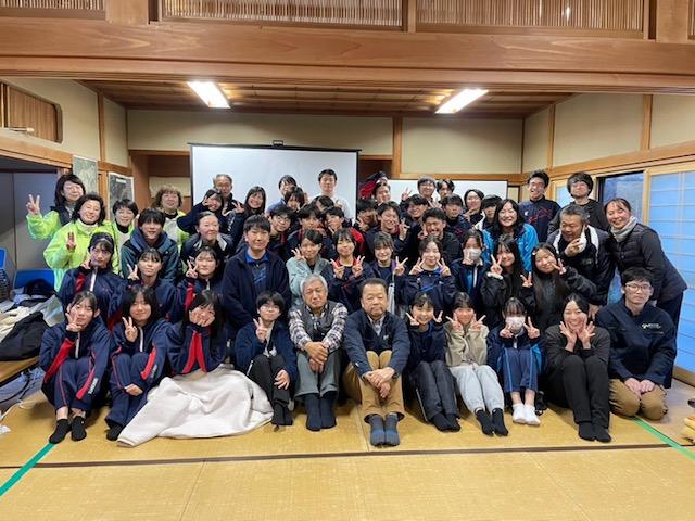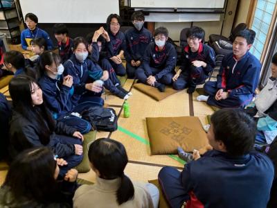 柳田植物公園では、古民家の家財道具や畳を蔵に運び入れ、輪島塗の整理を行いました。一方、高倉神社では、地域の方々と協力し、バケツリレー形式で瓦礫の撤去作業に取り組みました。昼食には手作りの豚汁をいただき、午後は公民館で地域の方々と能登高校生との交流会を楽しむなど、作業だけでなく心温まる交流も経験しました。