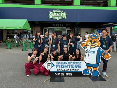 千葉県鎌ケ谷球場で行われた2025プロ野球イースタンリーグ公式戦の会場にて、牛久栄進高校ブースを出展し、能登の物産や能登高校のクッキーを販売しました。当日は、ピンボールゲームのコーナーを設け、子どもたちに楽しんでもらいながら、景品として能登高校のクッキーを紹介するなど、工夫を凝らした販売活動を行いました。クッキーは「とてもおいしい」と大好評で、多くの方に手に取っていただくことができました。5月の能登ボランティアをきっかけに、8月のチャリティーコンサート、そして今回の鎌ケ谷球場での販売と、支援の輪を広げてきました。今後も11月のうしくわいwaiまつりなど、地域イベントでの販売を予定しています。栄進高校は、これからも能登高校を応援し続けていきます。また、JRC部のダンスチームが試合前イベントに出演し、スタジアムで他のダンスチームとともにパフォーマンスを披露しました。広い球場の舞台で堂々と踊る姿に、大きな拍手が送られました。ダンスで地域を明るく元気にする高校生の今後の活躍がますます楽しみです。