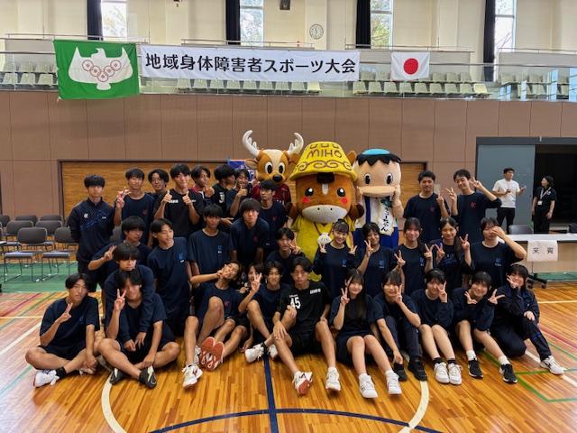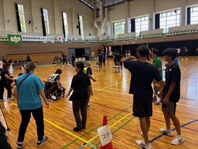 牛久運動公園体育館にて、県南地区8市町村(牛久市、阿見町、かすみがうら市、龍ケ崎市、取手市、美浦村、つくばみらい市、稲敷市)に在住する身体障害者の方々を対象としたスポーツ大会が開催されました。本校からはサッカー部とJRC部の生徒あわせて30名が、ボランティアスタッフとして参加しました。