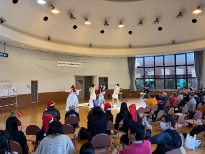 牛久市総合福祉センターで開催されたクリスマス会に、JRC部15名が参加しました。ボランティアスタッフとして運営のお手伝いをしながら、ダンスのパフォーマンスも披露しました。各団体の発表はどれも素晴らしく、なかでも参加者全員で手話を使ってクリスマスソングを歌った時間がとても印象に残っています。今回の経験をきっかけに、生徒たちが手話に興味を持ち、さらに多くの手話を覚えてくれることを期待しています。