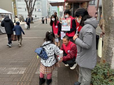 足を止めて募金してくださる方や、「寒い中ご苦労さま」と温かい言葉をかけてくださる方も多く、生徒たちにとって大きな励みとなりました。皆さまのご協力のおかげで、多くの募金をお届けすることができました。今回の活動を通して、生徒たちは支え合いの大切さや、勇気を出して一歩踏み出すことの大切さを実感することができました。この経験を、今後のボランティア活動にも生かしていきたいと思います。