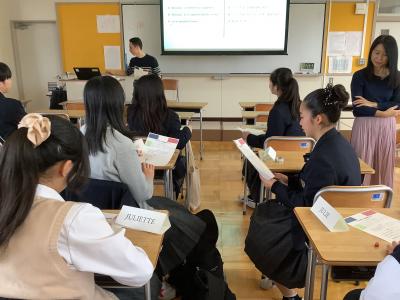 講座中は、各自先生からフランス人の名前を授けられました。お互いフランス流人の名前で呼び合い、ロールプレイも実施。英語とは少し異なる響きに生徒たちは興奮しながら第1回目で簡単な自己紹介ができるようになりました!