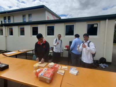 昼休みと放課後には、カレッジのバレーボールクラブが遠征費のために校内でホットドッグを売っています。部活動のために頑張る姿は栄進生と変わりありませんね。