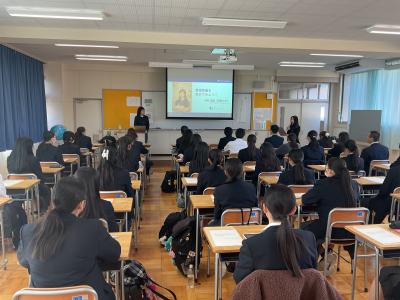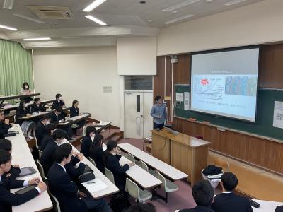 演題は「言語意識を高めてみよう!」と「土木工学からみる江戸時代の河川管理」です。72名の本校生が受講し、興味関心を深め、進路意識を高めることができました。大変おもしろい内容で、生徒だけでなく教員も食い入るようにお話を聞きました。