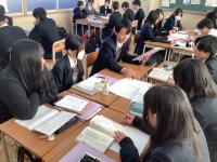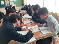 昨年度は先輩に教わる立場だった2年次生が、1年次生に『土佐日記』を通して文法知識や勉強の仕方を教授し、先輩としての背中を見せます。